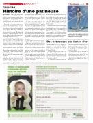 Au cours de la dernière année, elle s’est classée 3e en «Interprétation dance» à la com- pétition «Invitation Asticou» et 4e en «Style libre». Aussi, à la compétition interne du club qu’elle fréquente à Orléans, elle s’est classée 2e au niveau des «éléments d’équipe» et 4e en «triathlon». De plus, lors de la compétition régionale à Cornwall, elle est arrivée 4e, ce qui lui procure une porte d’entrée et lui per- mettra d’agir, en tant que substitut, aux pro- vinciaux, dans l’éventualité qu’une autre patineuse de sa catégorie ne puisse s’y rendre. Qui sait, peut-être la verrons-nous un jour sur nos écrans ?