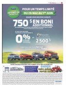 Les véhicules illustrés peuvent être dotés d’équipements offerts en option. Les détaillants peuvent vendre ou louer à prix moindre. Ces offres s’adressent à des particuliers admissibles uniquement, sur approbation du crédit par Crédit Ford. Certains clients pourraient ne pas être admissibles au taux d’intérêt annuel le plus bas. Un dépôt de sécurité pourrait être exigé par Crédit Ford selon les termes et conditions régissant le contrat de crédit du client. Tous les prix et rabais sont appliqués à partir du prix de détail suggéré par le constructeur (PDSC). Pour obtenir tous les détails, consultez votre détaillant Ford, ou appelez le Centre des relations avec la clientèle Ford au 1 800 565-3673. Pour les commandes à l’usine, un client admissible peut se prévaloir des primes/offres promotionnelles de Ford en vigueur soit au moment de la commande à l’usine, soit au moment de la livraison, mais non des deux. Les offres des détaillants ne peuvent être combinées à l’assistance-compétitivité des prix, à la réduction de prix aux gouvernements, aux primes pour la location quotidienne, au programme d’encouragement aux modi cations commerciales ou au programme de primes aux parcs commerciaux. ^ Cette offre est en vigueur du 26 mai au 1er juin 2015 (la « période du programme ») et s’adresse à des particuliers admissibles uniquement, sur approbation du crédit par Crédit Ford. Recevez 500 $ / 750 $ applicables lors d’un nancement à l’achat d’un véhicule Ford 2015 neuf parmi les suivants : Focus (à l’exception de la version S), Fiesta (à l’exception de la version S), C-MAX, Fusion, Mustang (à l’exception des versions 50e anniversaire et GT350), Taurus, Edge, Flex, Expedition, Transit Connect, Série E à fourgon tronqué, Transit, F-250 à F-550 / Escape, F-150 (chacun étant un « véhicule admissible »). Une (1) seule offre est applicable au nancement à l’achat d’un (1) véhicule admissible. Les taxes s’appliquent avant la déduction du montant admissible pour le modèle nancé à l’achat. * Jusqu’au 30 juin 2015, obtenez un taux de nancement annuel de 0 % à l’achat d’un véhicule Ford neuf parmi les suivants : Flex, Escape et Mustang (à l’exception des modèles Shelby GT350 et Mustang 50e anniversaire) 2015; Edge 2014 pour un terme maximal de 60 mois / Focus, Fusion, Taurus et F-250 à F-450 (à l’exception des versions à châssis-cabine) 2015 pour un terme maximal de 72 mois. Cette offre s’adresse à des particuliers admissibles, sur approbation du crédit par Crédit Ford. Certains clients pourraient ne pas être admissibles au taux d’intérêt annuel le plus bas. Par exemple, pour un nancement à l’achat de 25 000 $ au taux d’intérêt annuel de 0 % pendant 60 / 72 mois, la mensualité exigible est de 416,66 $ / 347,22 $, le coût d’emprunt est de 0 $ ou le taux d’intérêt annuel est de 0 %, pour une somme totale remboursable de 25 000 $. Un acompte pour les offres de nancement à l’achat peut être exigé en fonction de l’approbation du crédit par Crédit Ford. ** Jusqu’au 30 juin 2015, obtenez un taux de nancement annuel de 0 % à la location d’un véhicule Ford neuf parmi les suivants : Fusion 2015 et F-150 2015 (à l’exception de la version XL 4x2 à cabine simple Ultra-avantageux) / Edge 2014 et 2015, Flex 2015 / Focus 2015, Taurus 2015, Escape 2015 pour un terme maximal de 24 / 36 / 48 mois. Certaines conditions et une limite de kilométrage par année s’appliquent. Des frais de kilométrage excédentaire s’appliquent lorsque la limite annuelle est excédée, plus les taxes en vigueur. Consultez votre détaillant pour tous les détails. ± Le programme sera en vigueur du 1er mai au 30 juin 2015 (la « période du programme »). Pour se quali er en vertu du programme, le client doit remettre un véhicule de l’année-modèle 2008 ou plus ancien qui est en état de fonctionner (capable de démarrer et de rouler et auquel aucune pièce ne manque) et qui était immatriculé et assuré au cours des 3 derniers mois (les « critères »). Les clients admissibles obtiendront une prime de 1 000 $ / 2 000 $ / 2 500 $ applicable à l’achat ou à la location d’un véhicule Ford neuf parmi les modèles suivants : Fusion 2015, Mustang 2015 (à l’exception de la version 50e anniversaire),