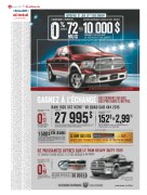 Le consommateur avisé lit les petits caractères : °, ‡, *, ± , **, , √. Les o res de cette annonce s’appliquent à la livraison au détail des modèles neufs sélectionnés achetés auprès des concessionnaires participants à compter du 2 juillet 2015 et pendant le mois en cours seulement, et peuvent être modifiées ou prolongées sans préavis. Les frais de transport (1 695 $) et les frais sur le climatiseur (le cas échéant) sont compris dans le prix d’achat. Aucuns frais supplémentaires ne seront ajoutés aux prix tout inclus des véhicules annoncés. L’immatriculation, l’assurance, les droits sur les pneus neufs (15 $) et les taxes applicables sont en sus et seront exigés à l'achat. Un acompte peut être demandé. Le concessionnaire peut devoir échanger ou commander un véhicule (lorsque applicable). Le concessionnaire peut vendre ou financer à prix moindre. Voyez votre concessionnaire participant pour les détails et conditions. ° Les rabais totaux de 10 000 $ sont disponibles sur les nouveaux modèles Ram 1500 2015 sélectionnés (à l'exclusion des modèles à cabine simple) et consistent en une combinaison de 8 500 $ en remises au comptant (déduites du prix négocié avant l’application des taxes) et de 1 500 $ en boni au comptant de fidélisation et de conquête. Certaines conditions s’appliquent. Dans la limite des stocks. ‡ Le prix d’achat annoncé s’applique au modèle Ram 1500 SXT HEMIMD V8 Quad Cab 4X4 2015 (DS6L41 + 25A + AGR) : 27 995 $. Le prix d’achat comprend les frais de transport de 1 695 $ et les rabais totaux allant jusqu’à 10 000 $, qui consistent en une combinaison de 8 500 $ en remises au comptant (déduites du prix négocié avant les taxes) et de 1 500 $ en boni de fidélisation et de conquête. * Les remises au comptant sont o ertes sur certains modèles neufs 2015 sélectionnés et sont déduites du prix négocié avant l’application des taxes. Une remise au comptant de 8 500 $ est applicable sur les modèles Ram 1500 2015 sélectionnés (à l’exclusion des modèles Ram 1500 à cabine simple 4X2 et 4X4 2015, qui se qualifient pour une remise de 6 500 $). Voyez votre concessionnaire participant pour tous les détails. ± Les taux de financement à l’achat à partir de 0 % jusqu’à 72 mois (modèles Ram 1500 2015, à l’exclusion des modèles à cabine simple) et à partir de 2,99 % jusqu’à 96 mois (modèles Ram 1500 2015, à l’exclusion des modèles à cabine simple) sont o erts aux clients admissibles sous réserve de l’approbation de crédit par la RBC Banque Royale, la Banque Scotia ou Financement auto TD et sont applicables sur certains modèles 2015 sélectionnés. Exemple : Ram 1500 SXT HEMIMD V8 Quad Cab 4X4 2015 (DS6L41 + 25A + AGR) avec un prix d’achat de 27 995 $ (incluant les rabais totaux allant jusqu’à 10 000 $, qui consistent en une combinaison de 8 500 $ en remises au comptant, déduites du prix négocié avant les taxes, et de 1 500 $ en boni au comptant de fidélisation et de conquête), financé à un taux de 0 %/2,99 % pour 72/96 mois sans aucun acompte (0 $), équivaut à 156/208 paiements aux deux semaines de 179,46 $/151,40 $, des frais de crédit de 0 $/3 496,20 $ et une obligation totale de 27 995 $/31 491,20 $. ** Prix de départ du modèle Ram 1500 Laramie 4X4 2015 à cabine d’équipe (DS6P98 + 28H) montré, incluant les rabais totaux allant jusqu’à 10 000 $, qui consistent en une combinaison de 8 500 $ en remises au comptant (déduites du prix négocié avant les taxes) et de 1 500 $ en boni de fidélisation et de conquête : 51 550 $. Prix de départ du modèle Ram 3500 Laramie 4X4 2015 à cabine d’équipe, roues arrière jumelées et moteur turbo diesel CumminsMD (D28P92 + 2EH + WLA) montré, incluant une remise au comptant sur le moteur turbo diesel CumminsMD de 9 345 $ et un boni au comptant de fidélisation et de conquête de 1 500 $ : 63 905 $. Les prix de départ des véhicules montrés incluent les remises/bonis au comptant et n'incluent pas les options (par exemple, certaines teintes de peinture). Les options sont disponibles moyennant des coûts additionnels. Les modèles montrés peuvent di érer légèrement des modèles qui sont commercialisés au Canada. Le boni au comptant de fidélisation et de conquête de 1 500 $ sur les camions Ram est o ert aux clients admissibles à l’achat au détail d’un modèle Ram 1500 2015 sélectionné (à l’exclusion des modèles à cabine simple), Ram 2500/3500 2014/2015, Ram châssis-cabine 2014/2015 ou d’un fourgon utilitaire Ram 2015 et est déduit du prix négocié après l’application des taxes. Les clients admissibles sont les propriétaires actuels d'un camion Dodge ou Ram ou les propriétaires ou locataires actuels d'un camion d’un autre manufacturier. Le véhicule doit avoir été acheté ou loué par le client admissible et enregistré à son nom au plus tard le 2 juillet 2015. Une preuve de propriété ou d’entente de location sera exigée. Les travailleurs spécialisés agréés ou ceux qui suivent une formation de travailleurs spécialisés sont également admissibles. Ceci inclut les travailleurs agréés, les travailleurs certifiés et les clients qui terminent un certificat d’apprentissage. Une preuve de licence ou un certificat de travailleur spécialisé sera exigé. Certaines conditions s’appliquent. L’o re est valide pour le mois en cours seulement. √ Le rabais total consiste en une remise au comptant applicable uniquement sur les modèles Ram 2500/3500 2015 neufs équipés d’un moteur turbo diesel CumminsMD (ETK) sélectionnés (à l’exception des modèles châssis-cabine) : 9 345 $. Cette remise est déduite du prix négocié avant l’application des taxes. Certaines conditions s’appliquent. Voyez votre concessionnaire participant pour les détails et conditions. ¥ Longévité basée sur les données de IHS Automotive: Polk sur les véhicules canadiens en service au 1e